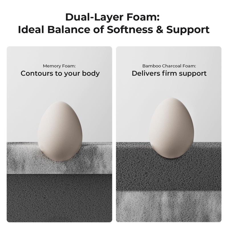 - [Dual-Layer Comfort] Soft, body-hugging memory foam on top for cloud-like comfort while firm bamboo charcoal foam below for enhanced support and durability