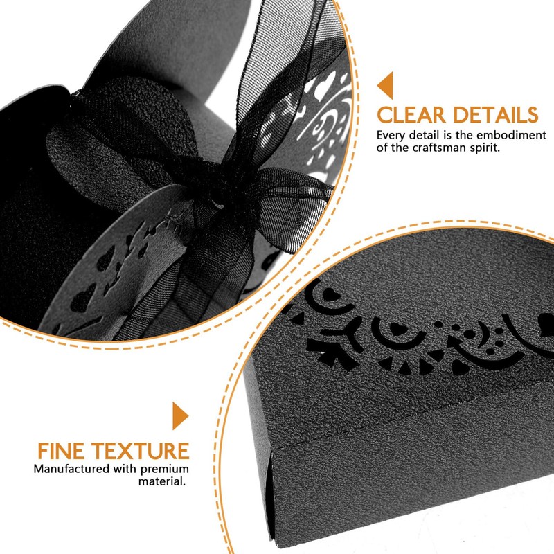 - 😍😍Ribbons for wedding party bridal shower: The boxes come with ribbons, making them easy to decorate and customize to match your wedding or bridal shower theme. The candy box is made of sturdy material.The hollowed out design gift box gives guests a nice thank you for attending your party.