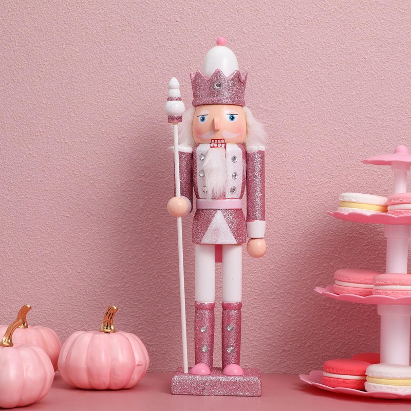 HOMSFOU Christmas Nutcracker Figure, 12in Pink Wooden Nutcracker Soldier for Christmas Desktop Ornament, 1pcs
