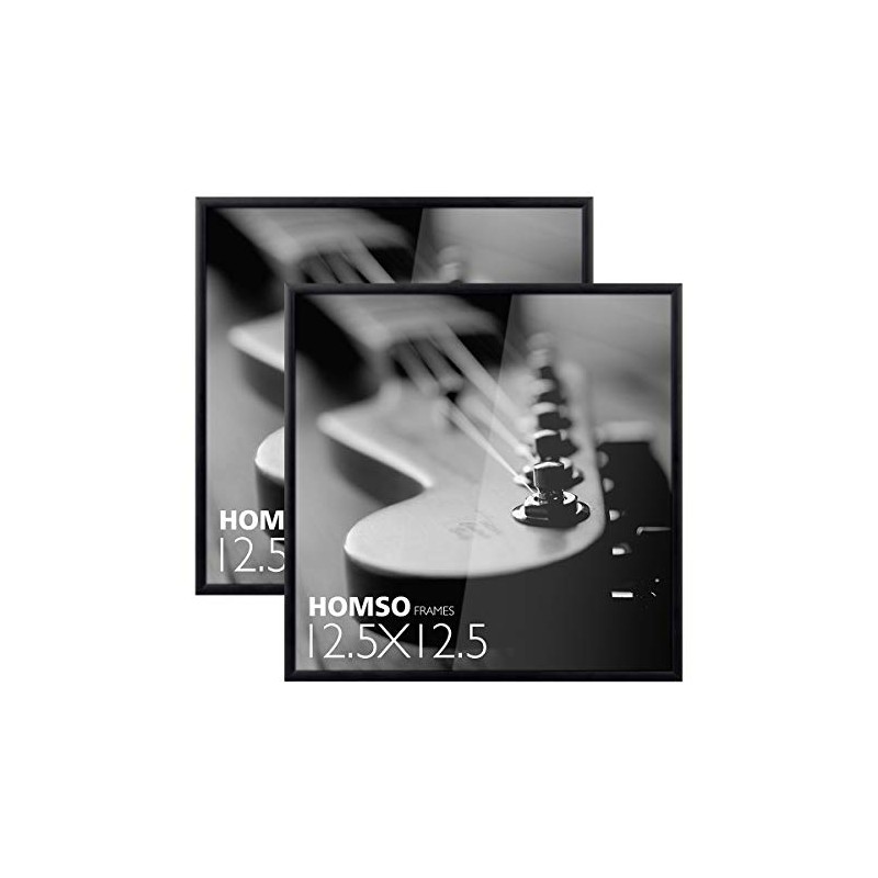 Homso Black Music Album Frame, 12.5" x 12.5" Frames Made to Display Vinyl LP Album Covers - Brushed Aluminum Finish - Hanging Hardware Installed with No Assembly Required 2-Pack