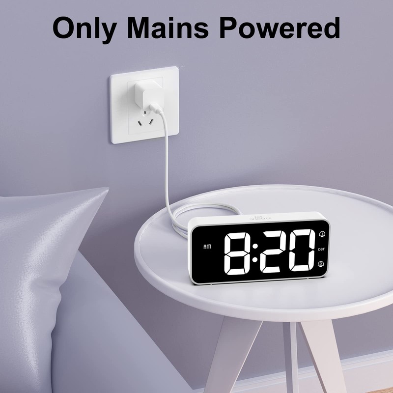 - WIRED POWER ONLY: We have already included a USB charging cable and adapter to our digital table clock so you can use the power supply conveniently. When a buffer battery (not included) is installed to save the clock settings in case of power outages; the time display supports 12-hour and 24-hour formats. (★★★ It is recommended to insert 2 AAA batteries as backup batteries. The battery only supports the memory function.)