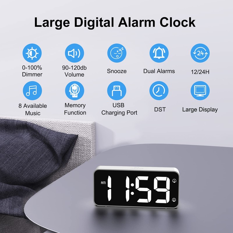 - Large LED Screen: This digital alarm clock has a 5.6 inch LED mirror screen that makes it easy to read; The large LED numbers of the alarm clock make it easy to read at day and night times. Due to its simplicity, one of the best alarm clocks for rooms. After unpacking, please remove the protective film first