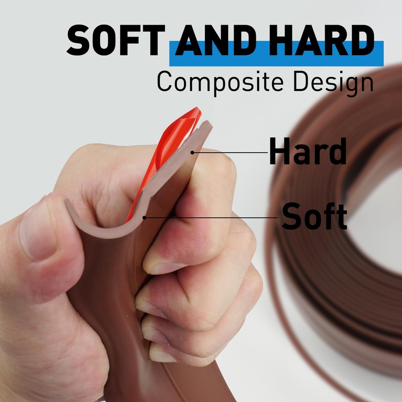 HOMWMPA Garage Door Seal Top and Sides, 34.4FT Garage Door Weather Stripping, Universal Soft and Hard Composite Rubber Weatherproofing Seal Strip with Adhesive Backing, Brown
