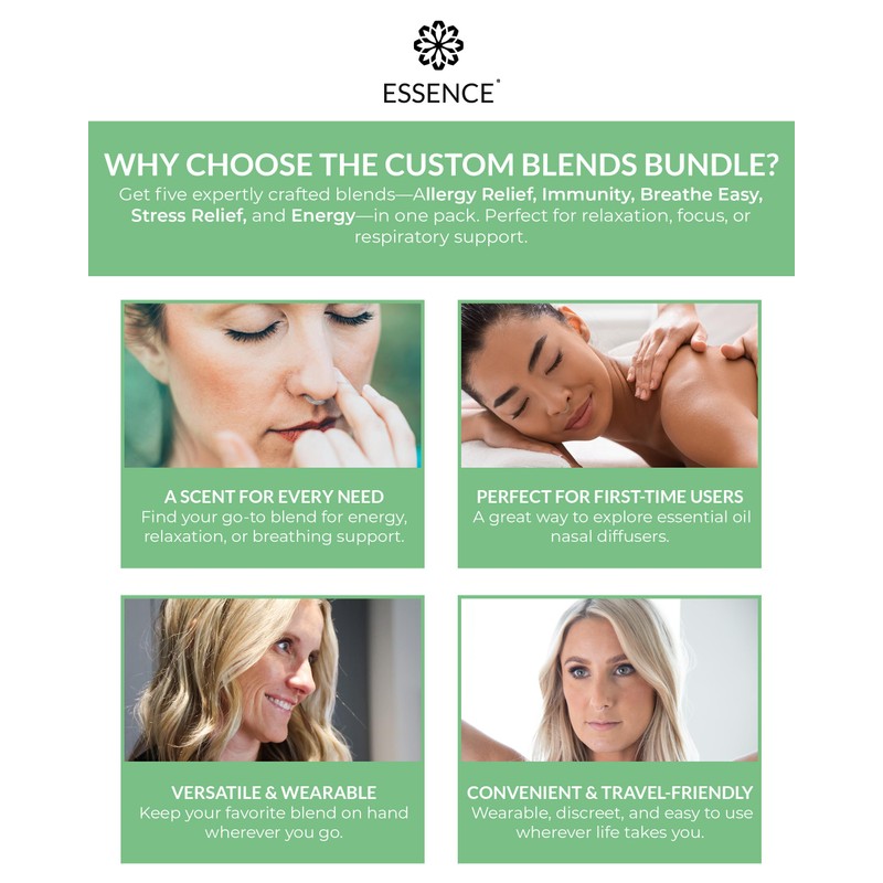 HONÉ Essence Nasal Diffuser Custom Blends Bundle – Essential Oil Silicone Nose Rings for Energy, Immunity, Stress & Allergy Relief – Wearable Aromatherapy for Daily Wellness & Relaxation