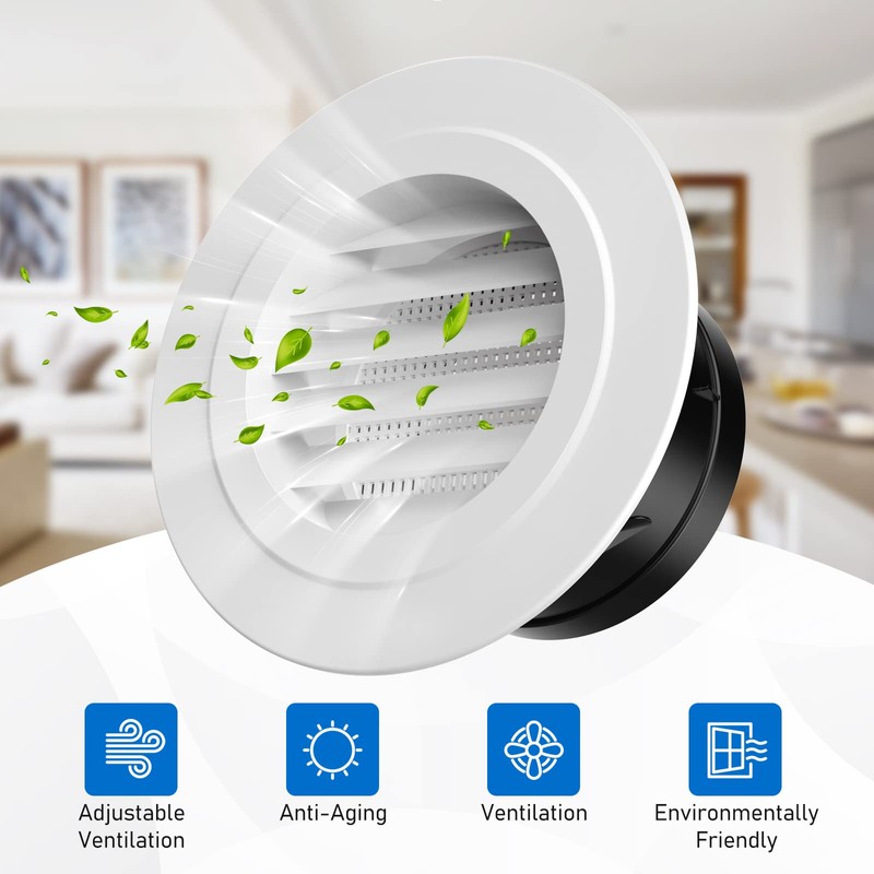 Hon&Guan Round Louver Air Vent for Walls Inside, ABS Grille Ventilation Vents Cover with Built-in Fly Screen Mesh and Air Flow Cover for Bathroom Office Room (4 inch)