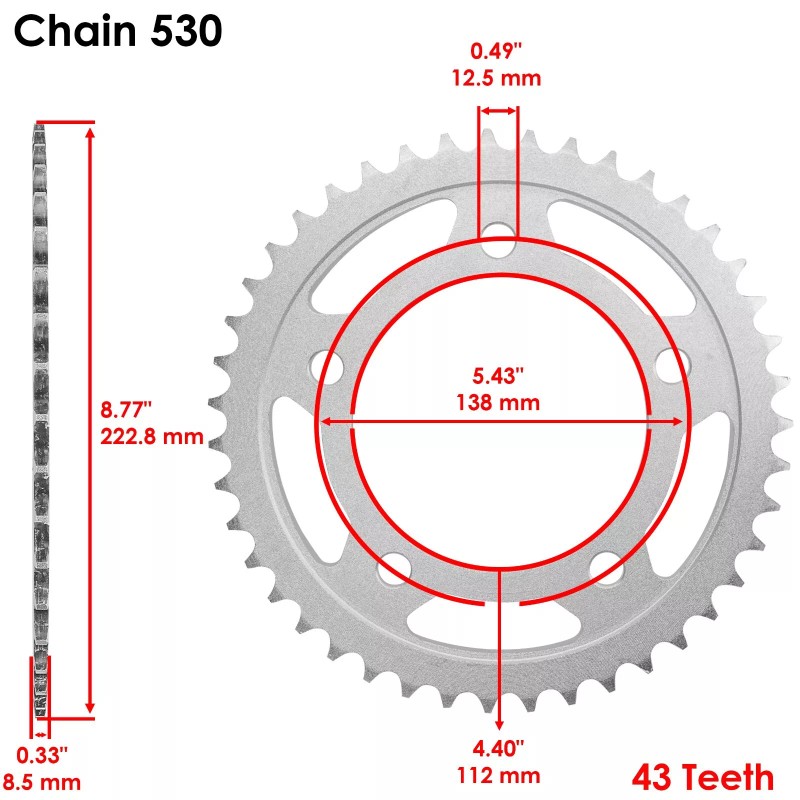 3. Rear Sprocket 43 Teeth / Material: C49 High Carbon Steel