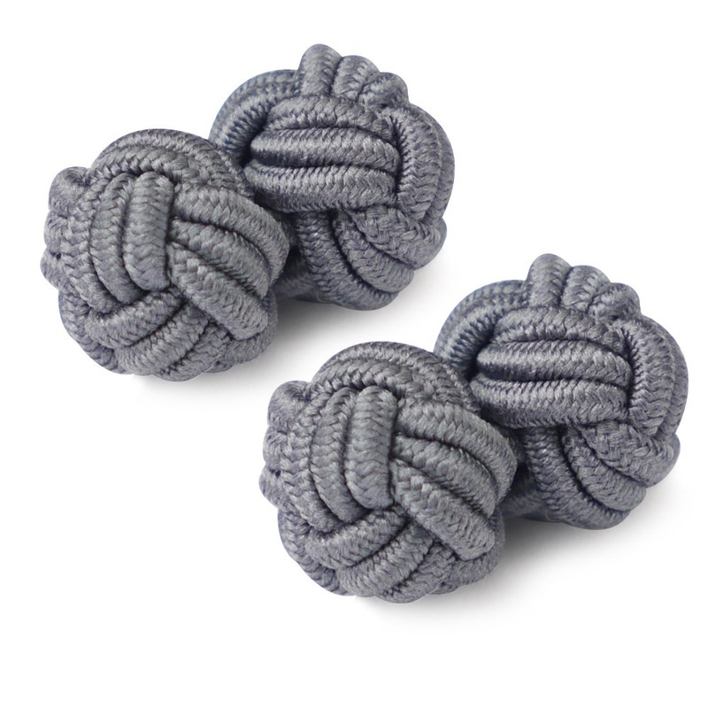 Honey Bear Cufflinks Silk Knotted Fabric Cufflinks Knot Shape 1 Pair, Grey