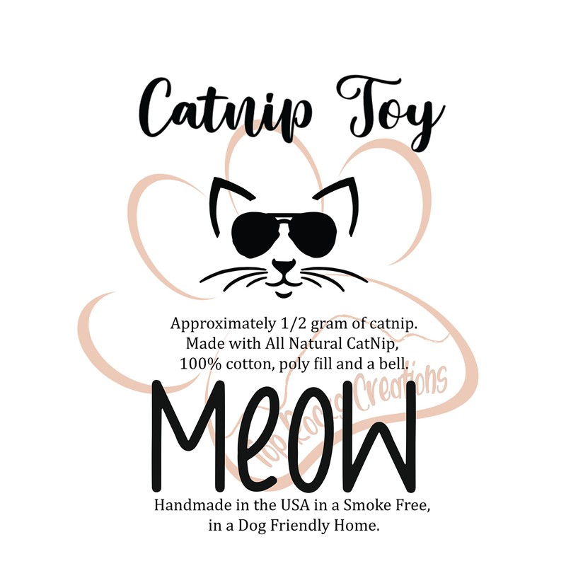 • Made with 100% Cotton, All Natural Cat Nip, Polyfil and a Bell.