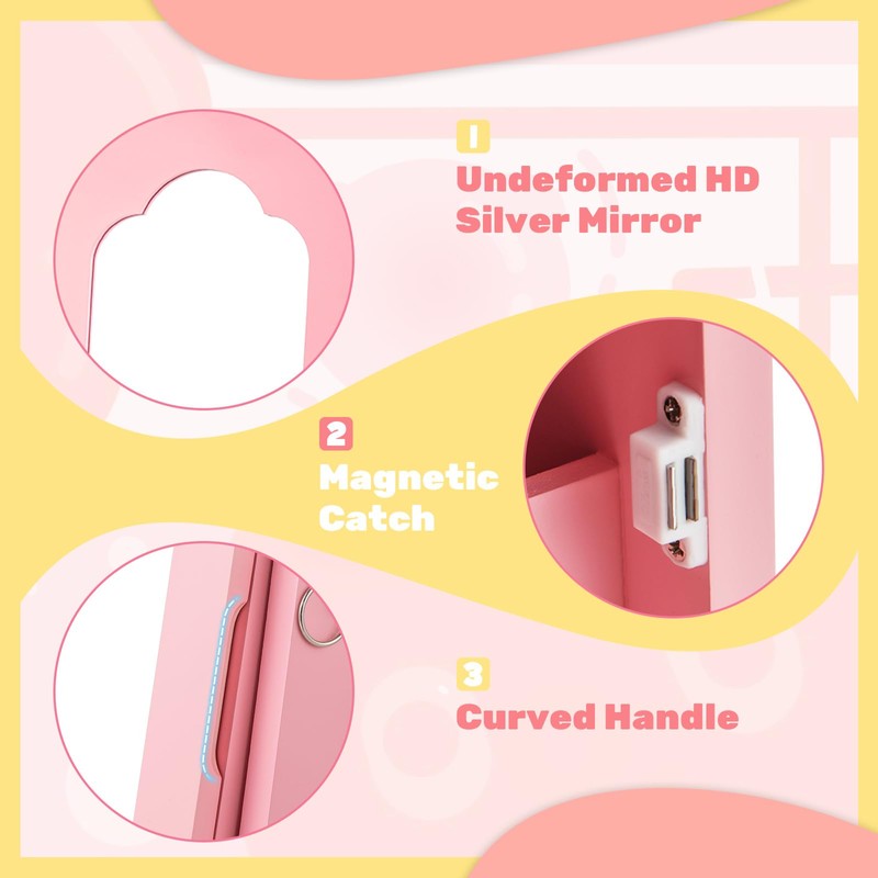 - 【Sturdy & Safe Structure】:Compliant with ASTM and CPSIA standards, this stable and robust kids' jewelry cabinet ensures durability and resilience against the playful antics of children. Moreover, you can fix it to the wall with included anti-toppling device for added safety.
