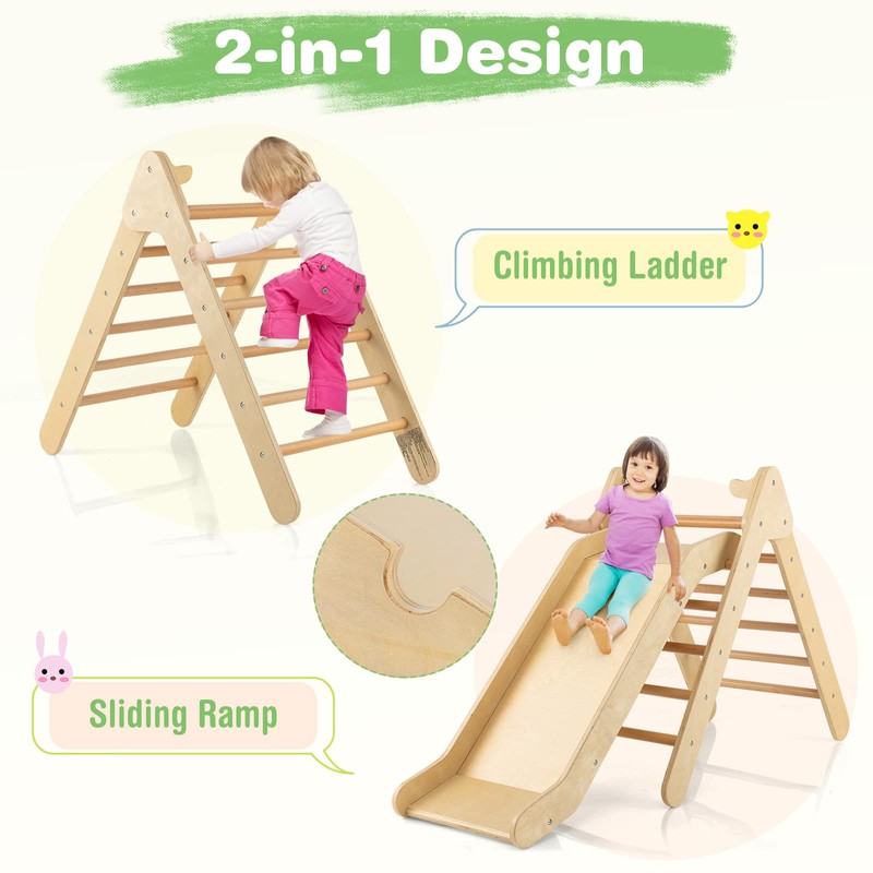- 【Fun Climbing & Sliding Toy】Our triangle climbing set consists of a climbing ladder and a sliding ramp to bring kids hours of fun, which is suitable for kids over 1. Toddlers can freely climb, slide, explore on our toy set to promote their balance ability, coordination ability, motor skills and cognitive skills.