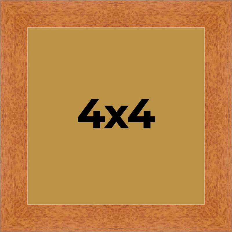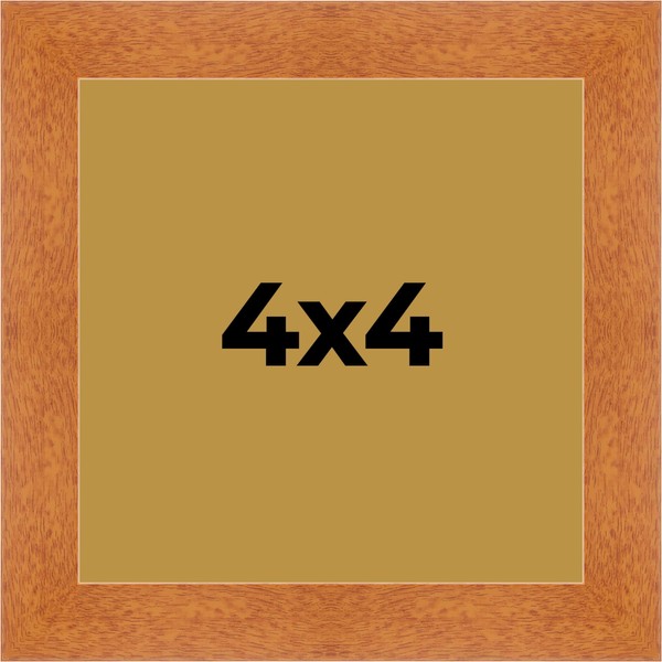 Honey Pecan 4x4 Small Shadow Box Picture Wooden Frame with Gold Acid-Free Backing UV Acrylic & Hanging Hardware - with 3/4" Usable Depth
