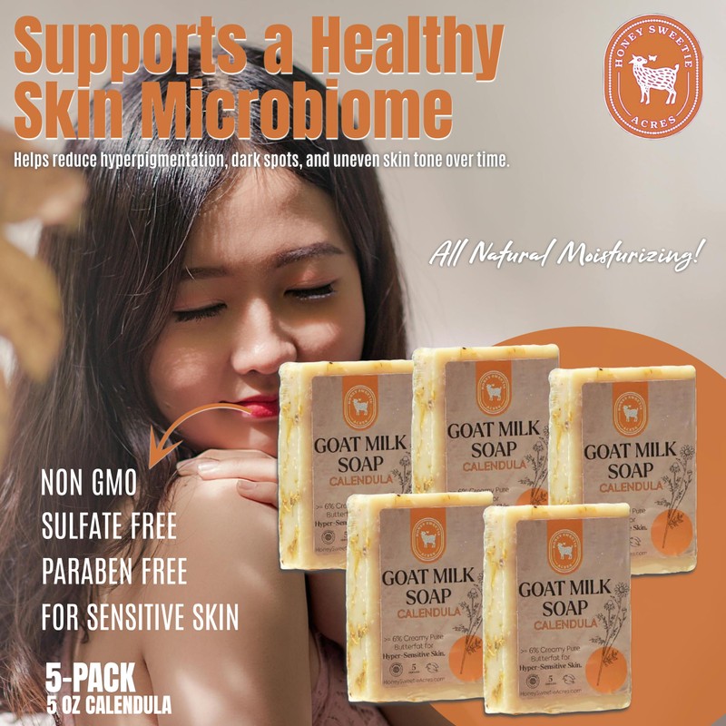 Honey Sweetie Acres 5-Pack Calendula Goat Milk Soap - Handmade 5 oz Bar, Made with Natural Ingredients, Moisturizing & Gentle, Made in the USA