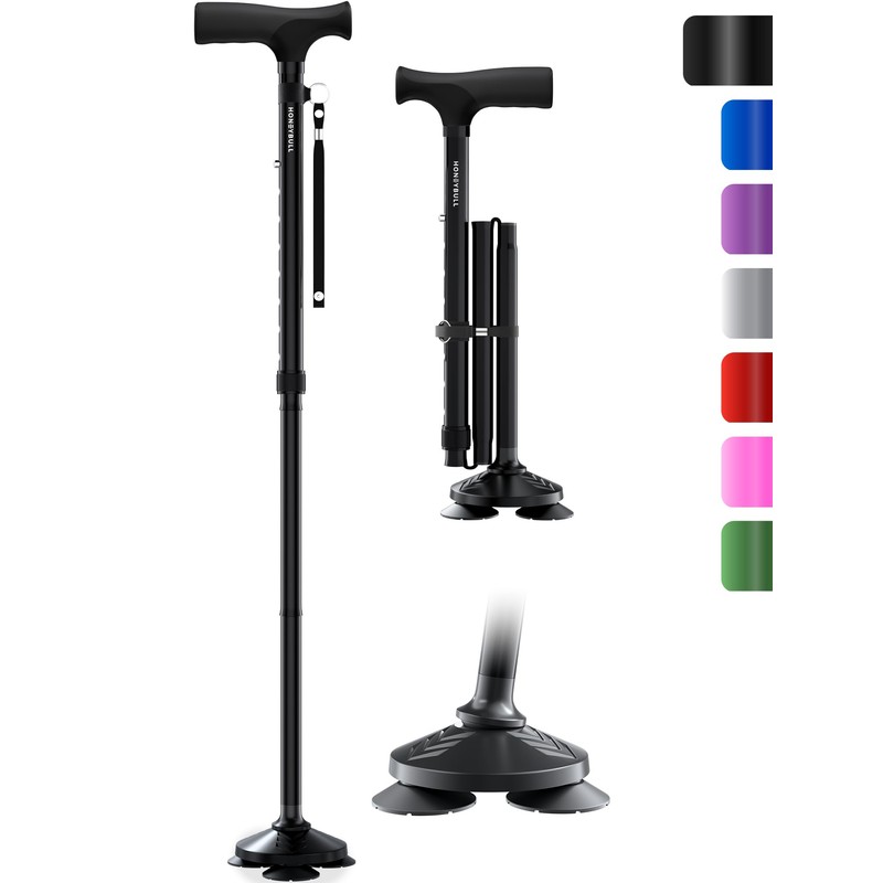 HONEYBULL Walking Cane for Men & Women - Foldable, Adjustable, Collapsible, Free Standing Cane, Pivot Tip, Heavy Duty | Walking Sticks, Folding Canes for Seniors & Adults (Black, Pivot Cane)