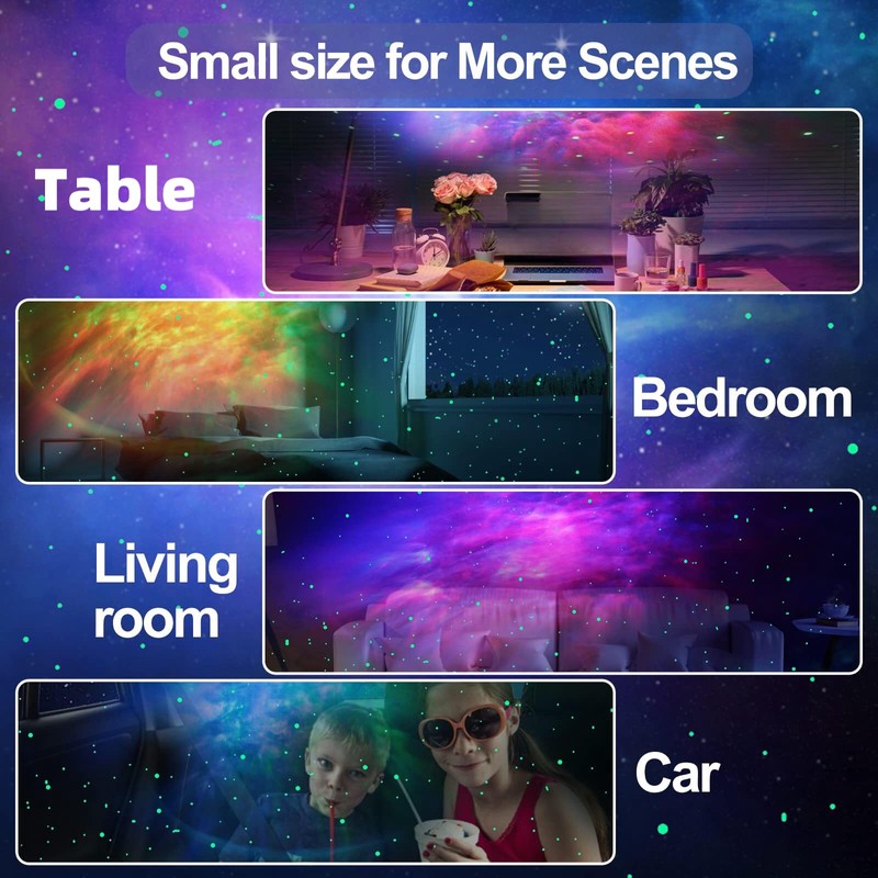 - This night light projector has up to 8 stunning nebula effects, accompanied by green stars