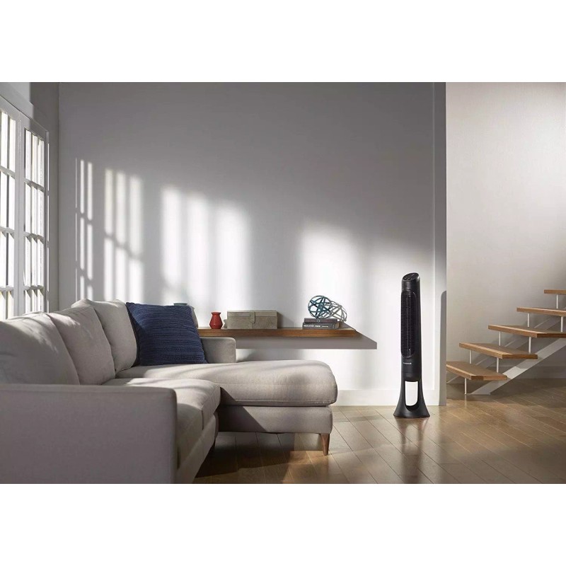 Enjoy a cool breeze in every room with the 40" Quiet Set Tower Fan. It features five speeds that are customizable and range from sleep to power cool settings. The lights on the control panel automatically dim after 15 seconds, making it ideal for nighttime use as well. This slim tower fan has touch-button electronic controls that are easy to use and a remote-control nest. The slim design of this unit is convenient because it does not take up too much space in your home. The oscillating tower fan has a sturdy and durable base that is to easy setup, requiring no tools.