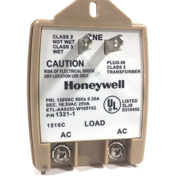 Honeywell Home 1321-1 AC Transformer 16.5VAC, 25VA 1321-1 - Honeywell 16.5VAC @ 25VA Plug-In Power Transformer (for VISTA-Series Control Panels)