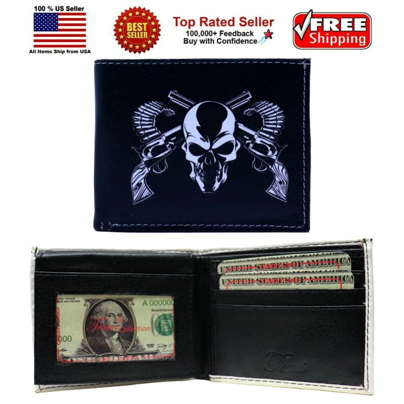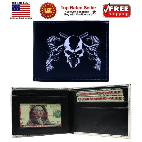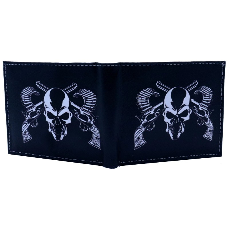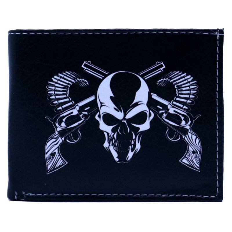 Honeywingz Two Revolver Guns Skull Head Leather Bi-Fold Bifold Wallet