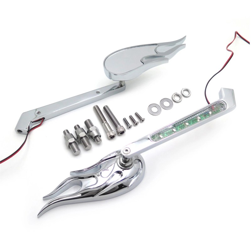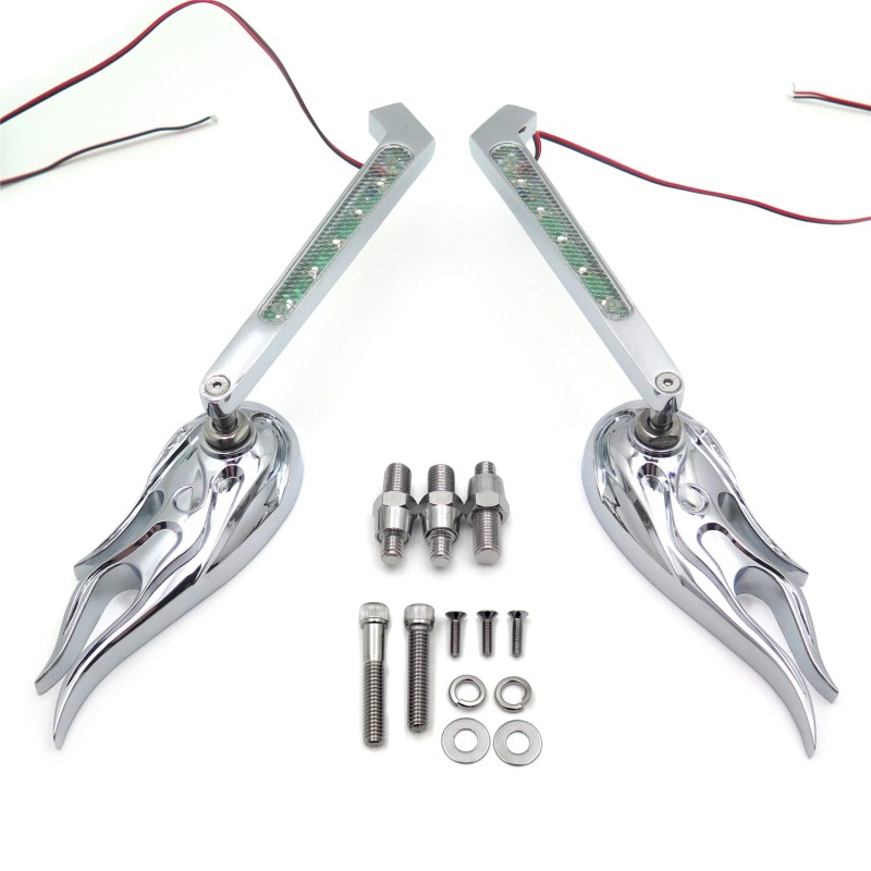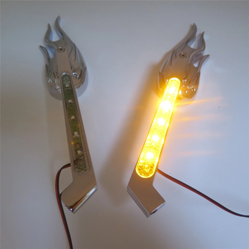 HONGK Flame LED Turn Signal Integrate Mirrors Fit all Harley Fat Boy Road King