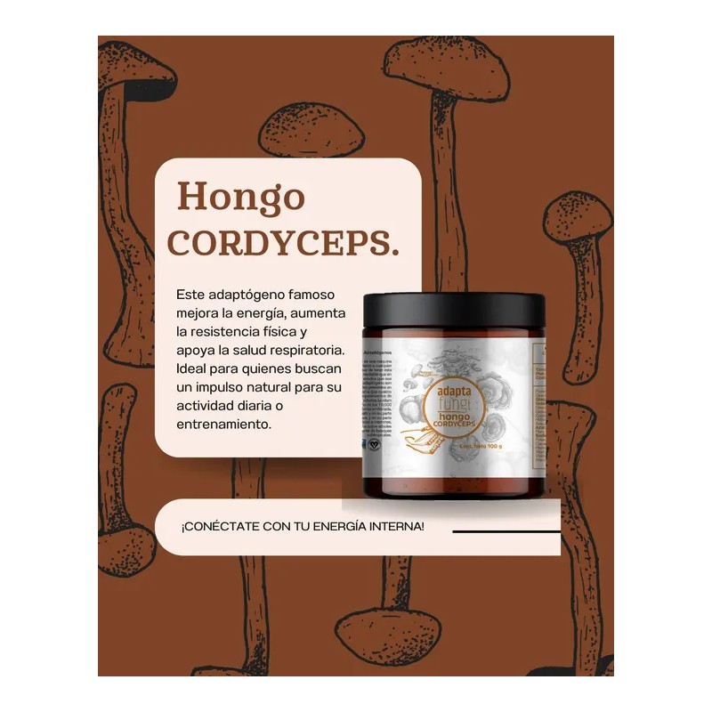 Descubre el poder del hongo cordyceps orgánico en formato de polvo, presentado en una bolsa de 1 kg de la marca Adapta Fungi. Este superalimento es ideal para quienes buscan aumentar su energía y mejorar su rendimiento físico. Su consumo regular favorece la oxigenación celular, lo que se traduce en una mayor resistencia durante tus actividades diarias o entrenamientos.