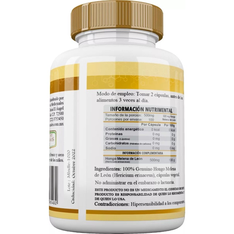 Hongo Melena de León (Lion's Mane) Orgánico - 100 Cápsulas, 500mg, Sabor Natural