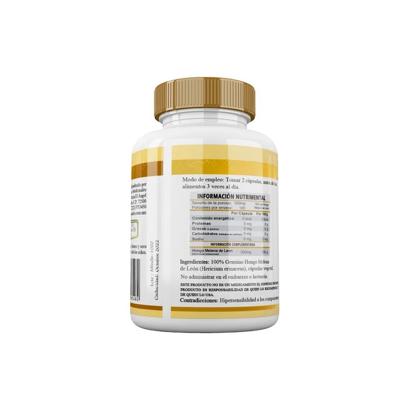 Hongo Melena De León (lions Mane)orgánic 100 Capsulas 500mg Sabor Natural