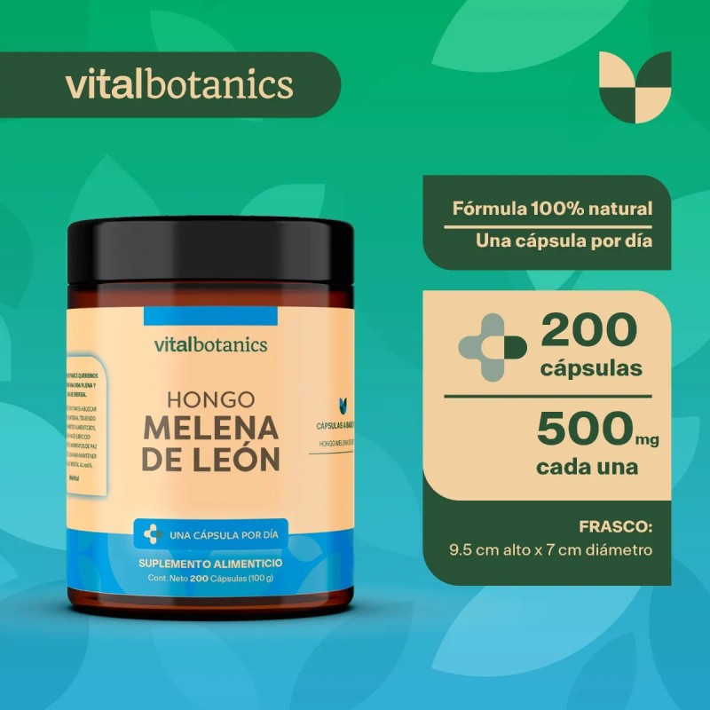 🧠🍄 Hongo Melena de León | Nootrópico Natural | 200 Cápsulas | Memoria, Enfoque y Energía Mental | VitalBotanics 🌿