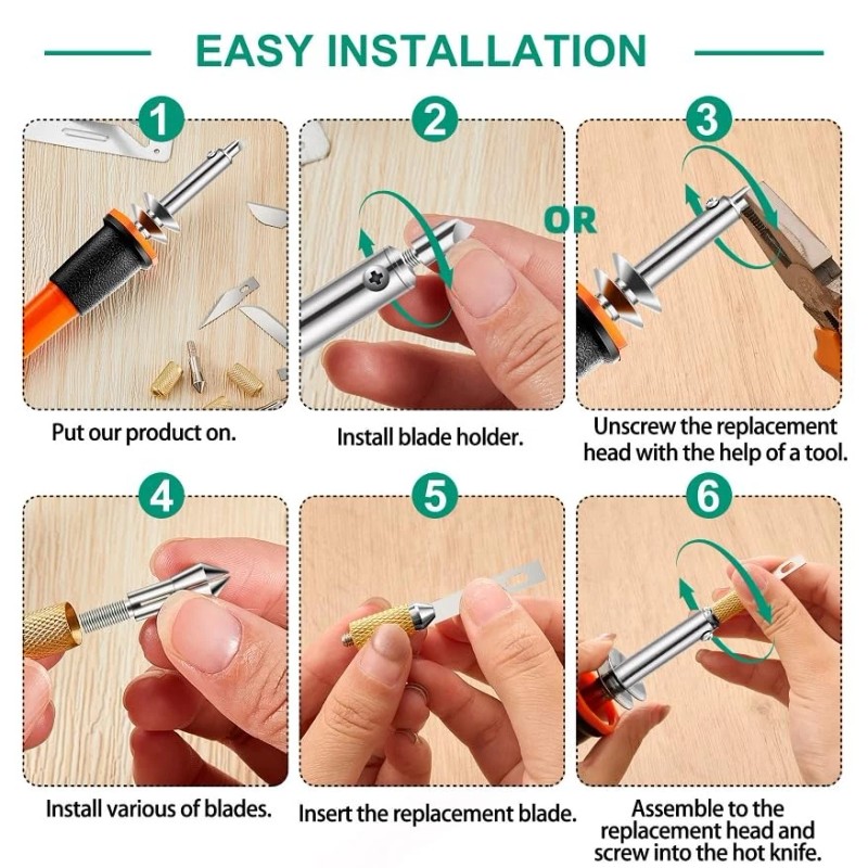 - Various Shapes of Blades: our package contains 16 pieces of blades with 8 different shapes, each shape has 2 pieces, they can be replaced according to your different requirements of different work, so as to cut various shapes; If the voltage is too high or too low, or if it is placed improperly, the product will not be heated or short circuited; Please check carefully before use; When we install the blade, the screws do not need to be tightened very tightly for easy replacement