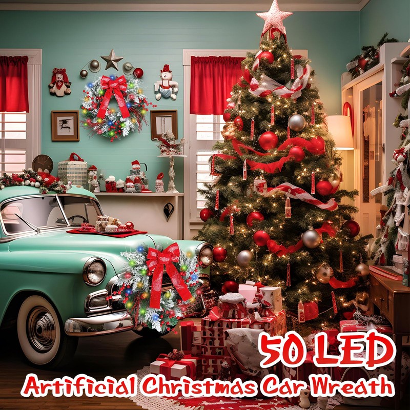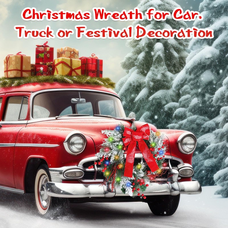 Honoson Christmas Wreath for Car, Truck or Festival Decoration LED Artificial Christmas Car Wreath and 5 Pieces 4 x 200 Black Nylon Cable Tie (Classic)