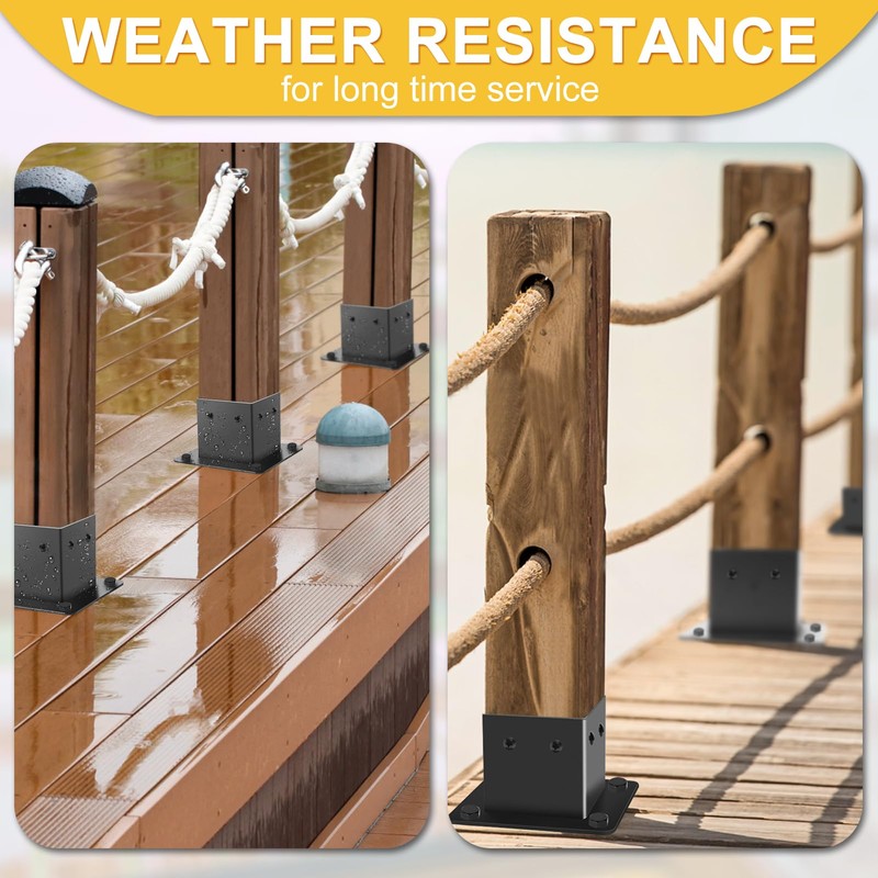 4x4 Post Base, 4Pcs Post Brackets (Inner Size 3.5"x3.5"), Black Powder-Coated Heavy Duty Steel Fence Post Anchor for Deck Porch Railing Pergola Support