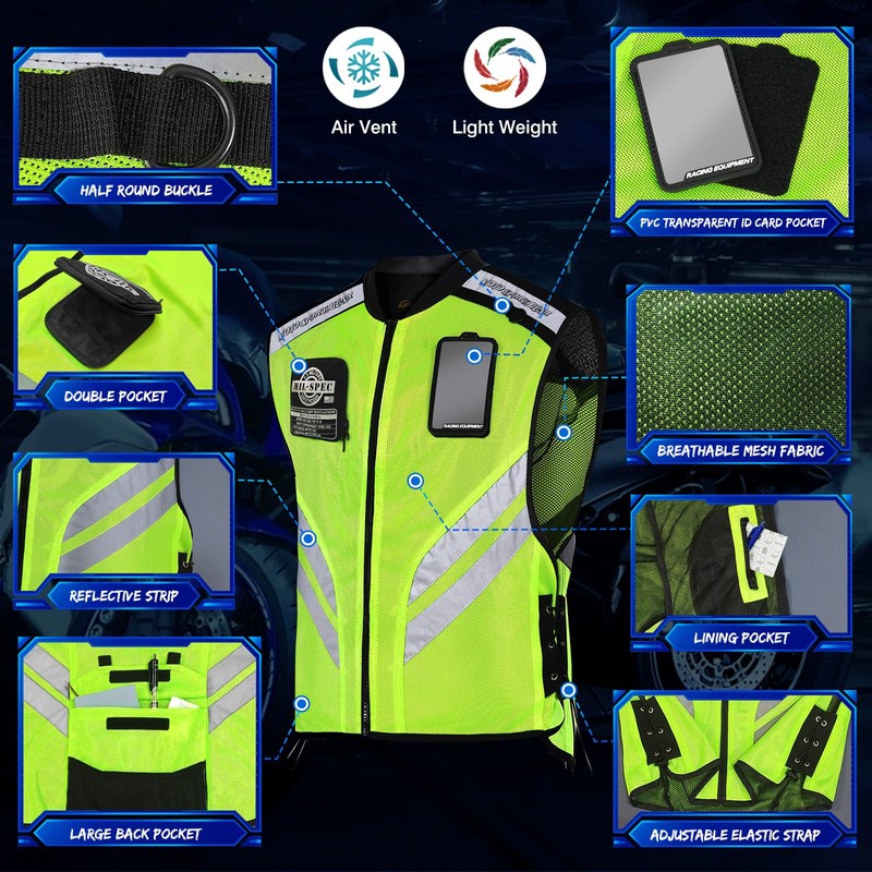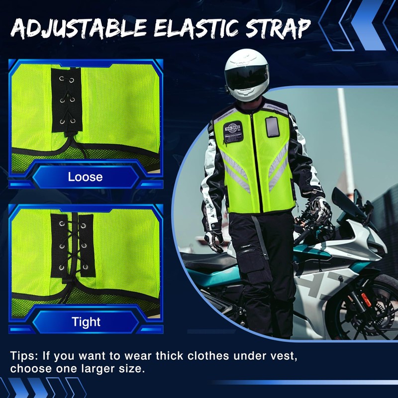 - Please choose the right size: you can choose the motorcycle vest size according to your usual size in summer. If you want to wear the high visibility vest over jacket, choose 1 larger size; Depends on the volume of your jacket.
