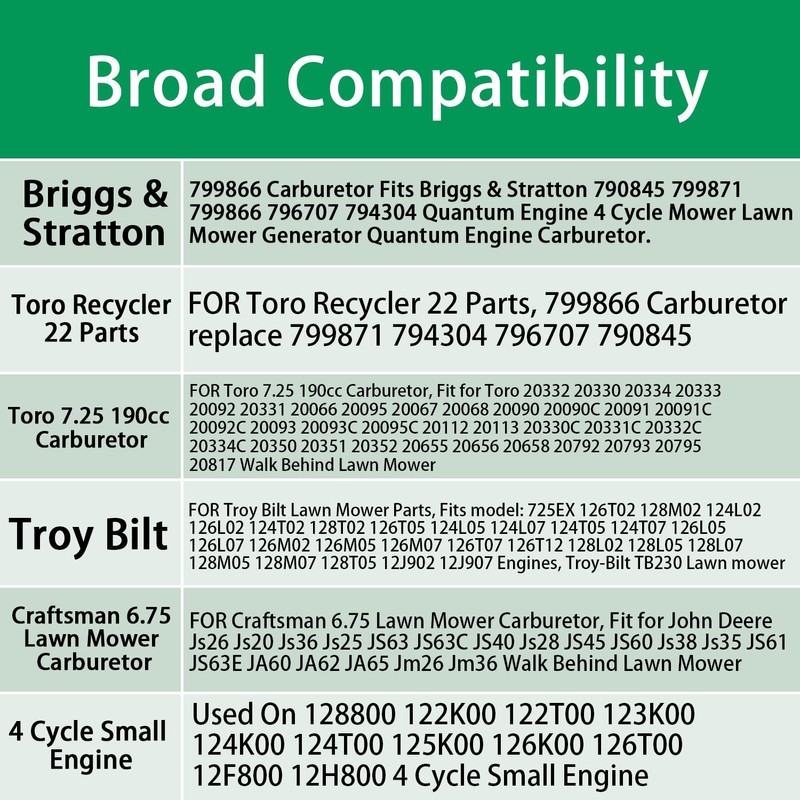 - 799866 Carburetor Fits Briggs & Stratton 790845 799871 799866 796707 794304 Quantum Engine 4 Cycle Mower Lawn Mower Generator Quantum Engine Carburetor.