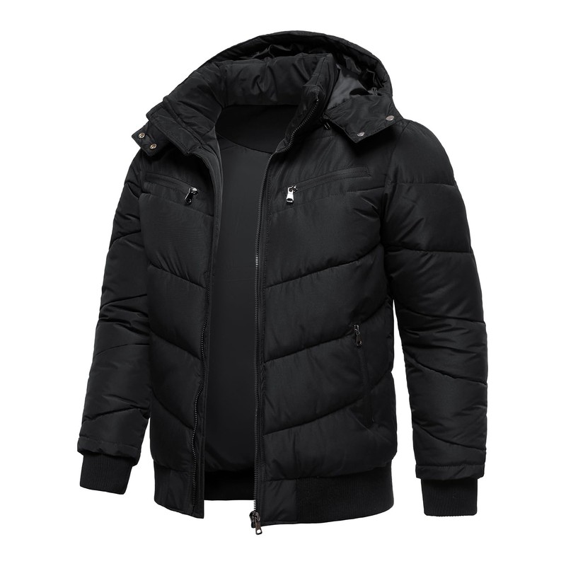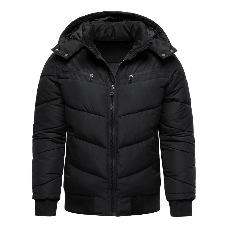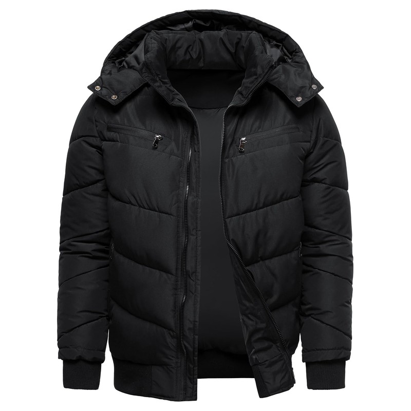 HOOD CREW Men’s Winter Coats Windproof Thicken Padded Parka Warm Puffer Jackets with Removable Hood Black M