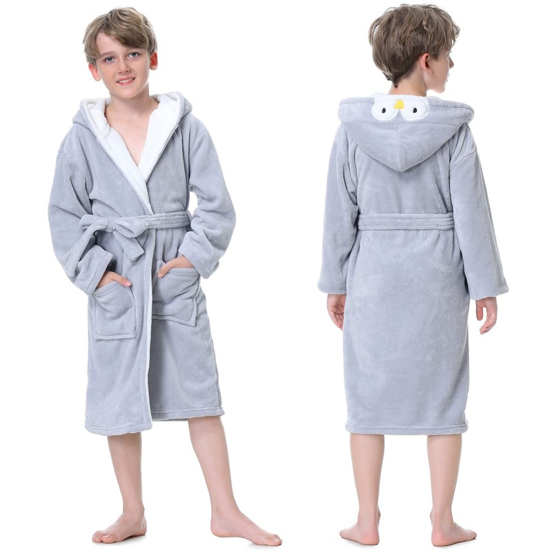 Hooded Herringbone Cloudy Penguin Boys Fleece Comfy Robe, Long and Soft Kids ...