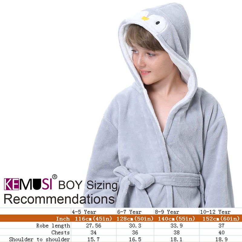 • 100% Polyester. Better wear after drying the body. Make the kid comfy as a mother's hug. Slip into this beautiful all-season fleece robe and relax. Cute penguin costumes with a warm hood, traditional patch pockets, double lips, and a belt. It will help your kid to be the star at any party.