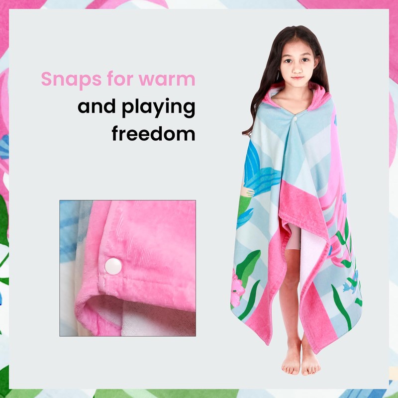Hooded Towel for Kids, 100% Cotton Soft and Absorbent, Big Pool Bath Beach Swim Towel Wrap, Bathrobe Coverups for Girls and Boys,30"×50"(Pink Hair Mermaid)