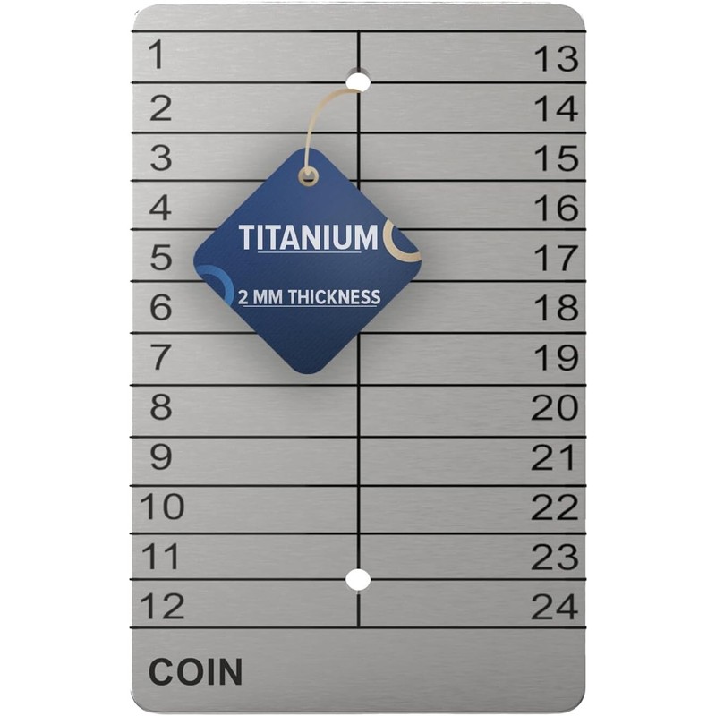- Compatible with all BIP39 wallets: Supports 12 to 24 mnemonic seed phrases in any language from Ledger Nano X, Trezor Safe 5, SecuX V20, and KeepKey. You may stack the passphrase metal money storage for crypto security.