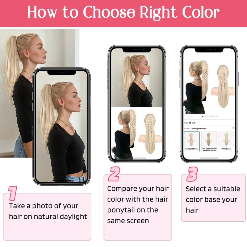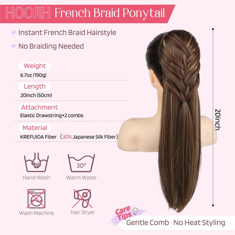 - Instant French Braid Ponytail – Pre-styled 20 inch braided ponytail extension gives you an elegant look in seconds. No braiding skills needed, just clip in and go