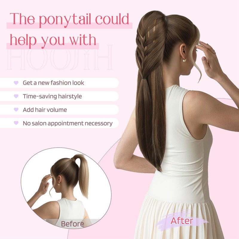 - Secure Clip-in Design – Built-in comb clip and adjustable drawstring keep this ponytail stable all day. Comfortable to wear, suitable for both thin and thick hair
