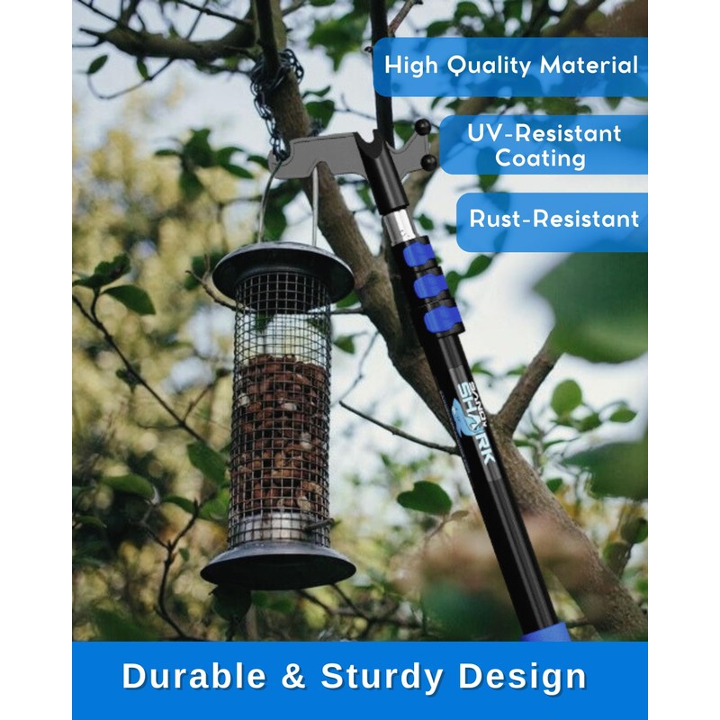 - VERSATILE MULTIPURPOSE POLE WITH UNIVERSAL THREAD The SaandShark universal attachment point accommodates nearly all household accessories, including paint rollers, squeegees, cobweb dusters, ceiling fan dusters, feather dusters, light bulb changers, and more. Whether you need to hang holiday lights, install bird feeders, adjust wind chimes, or reach tall vents and window blinds, our SandShark telescoping pole with a hook is the perfect solution for all your high-reach tasks
