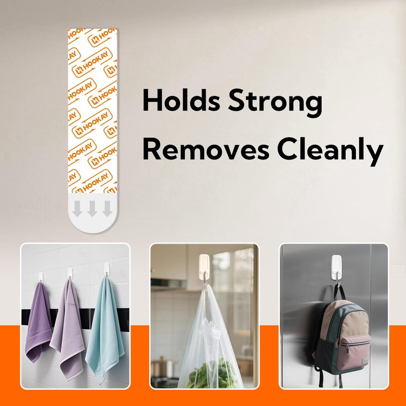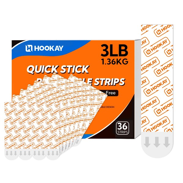 hookay Upgrade Medium Refill Adhesive Strips, Damage-Free Hanging Strips for Indoor Hooks, No Tools Removable Wall Adhesive Strips for Decor, Living Spaces & Bathroom, 36 White Strips