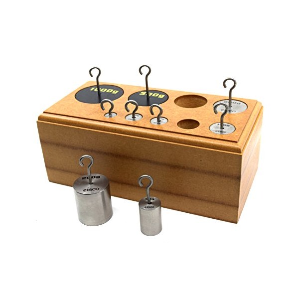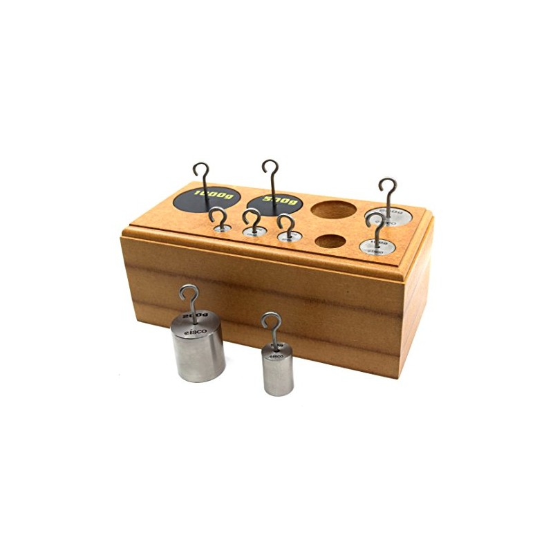 Hooked Weights Set, Stainless Steel, 9 Pieces - Metric Grams, 10-1000 Grams - Includes Wooden Storage Block - Eisco Labs