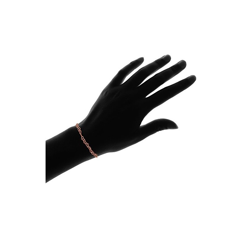- Esta hermosa pulsera muestra una pulsera única de cadena de eslabones de 3,5 mm entrelazados con corazones que es de 19 cm de longitud. La pulsera está hecha de plata de ley 925 bañada en oro rosa y está asegurada por un cierre de mosquetón. Combínalo con tu abalorio favorito para crear el accesorio perfecto o úsalo solo para un impresionante aspecto delicado.
