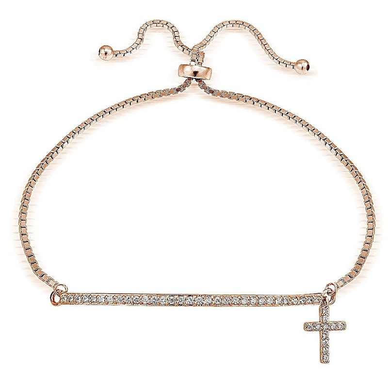 Hoops & Loops - Pulsera de Plata de Ley con circonita cúbica y Barra Ajustable.