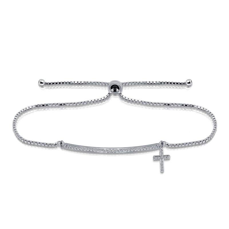 Hoops & Loops Sterling Silver Cubic Zirconia Cross & Bar Adjustable Pull String Bracelet