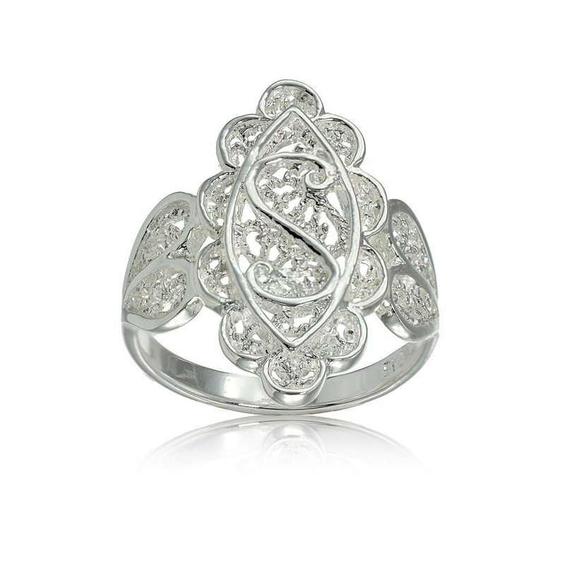 Hoops & Loops Sterling Silver Filigree Scrollwork Hearts Ring, Size 8