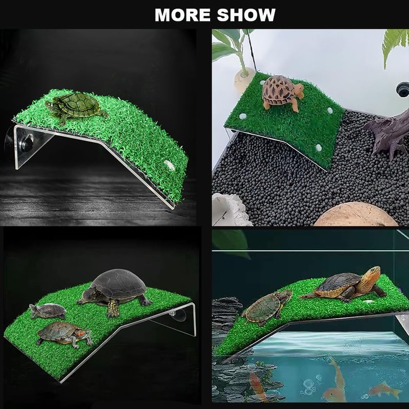 - High-quality material: the turtle platform with ramps is made of high-quality acrylic material and artificial grass to ensure long-term safety and reliability
