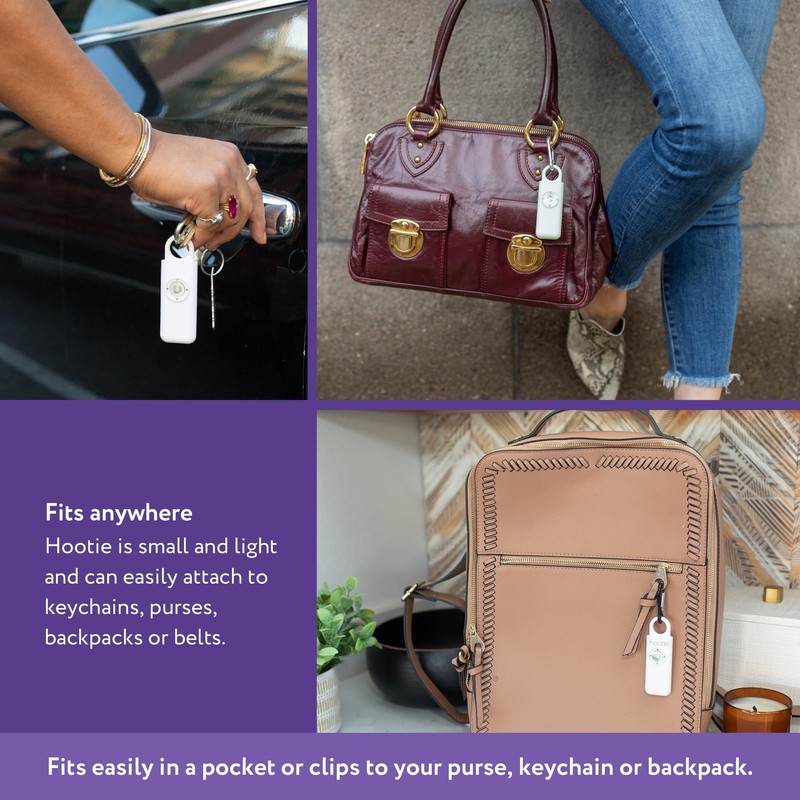 - Your Personal Self Defense Alarm: Hootie, the personal keychain alarm designed for women. It's a personal alarm that goes wherever you do. Whether you're walking around town, on campus, hiking a trail, etc, Hootie personal alarm has your back. Simply pull the pin to unleash a 130-decibel screech, as loud as an airplane, & activate a high-intensity strobe light. Your instant response in danger or emergency situations, effectively deterring potential attackers and rapidly alerting help.