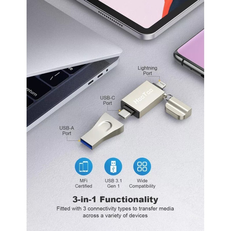 HooToo Flash Drive 3 in 1 External Drive USB 3.1 Memory Backup Stick 256GB