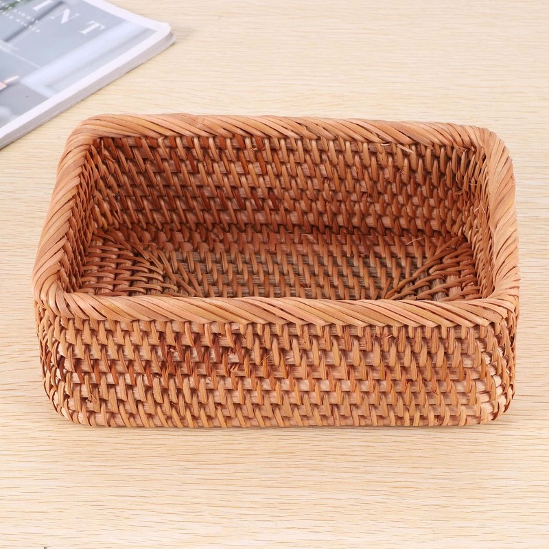 Hopbucan Hand Woven Rectangular Rattan Wicker Basket Tea Bread Picnic Cosmetic Storage Box Kitchen Household Tools S