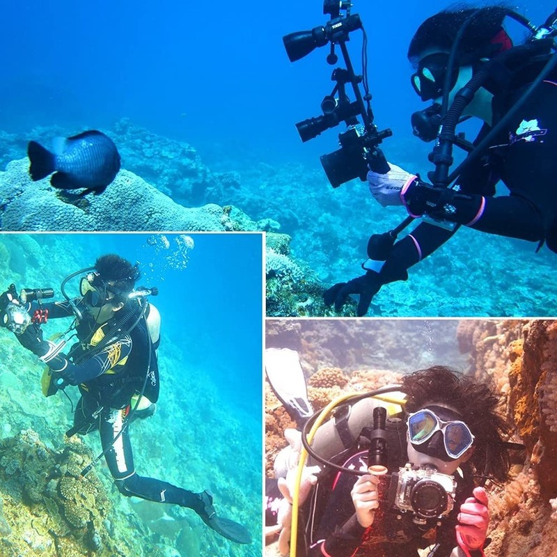 - 3. Mount the underwater stabiliser tray, the waterproof housing of the diving camera.